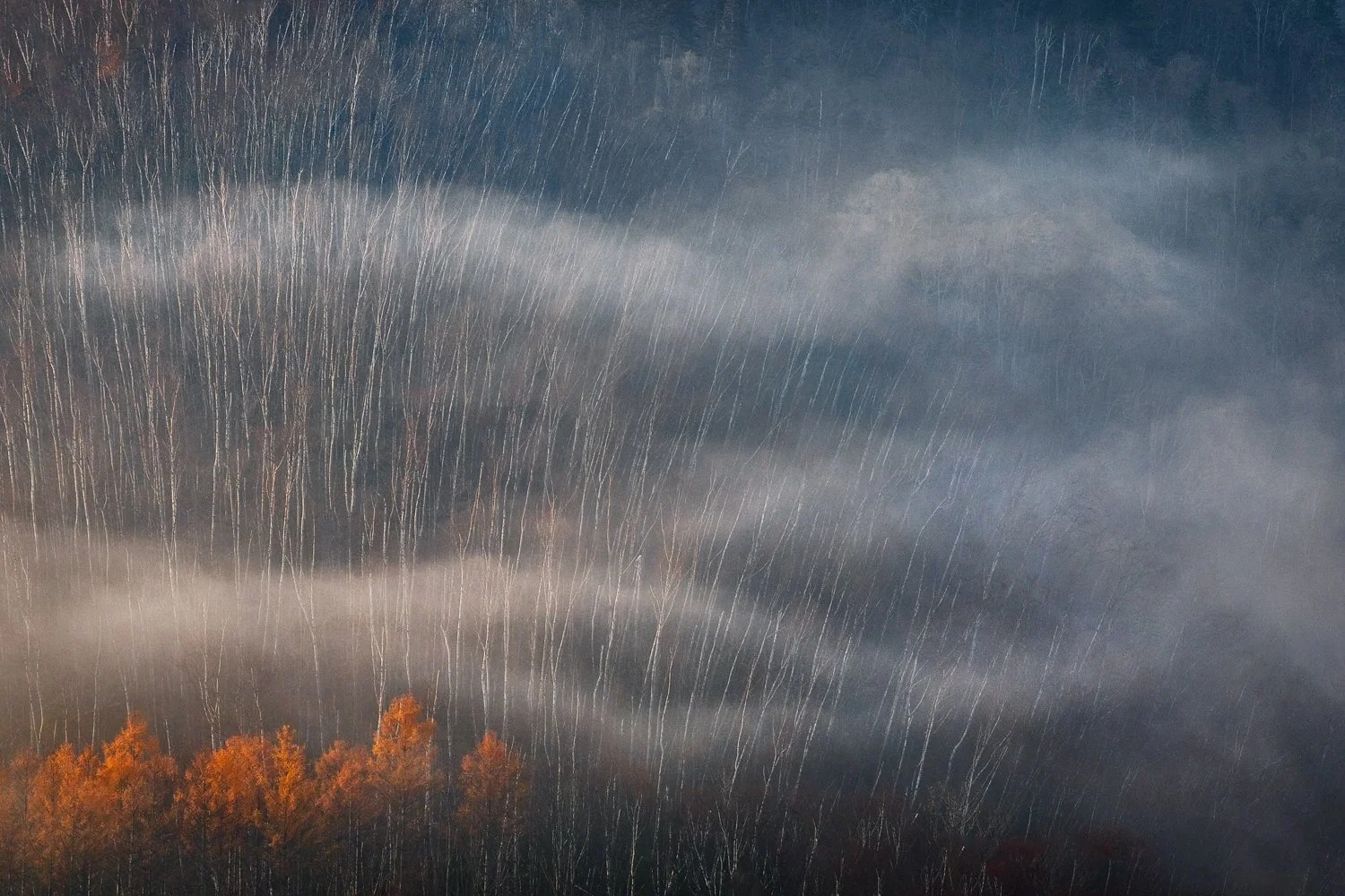 As an example of favorable conditions, there is a spot where the tip of trees will be selectively lit by the sun in the morning. During Autumn, I will visit this place whenever it rains overnight and the temperatures plummet because there will be a chance of mist appearing the following morning. However, 9 out of 10 times, the mist has turned out to be “not quite right.” This goes to show that although the place and the timing for the light are both right, I need nature’s cooperation to bring about the right conditions for the image to work (see image “Phantom”).